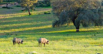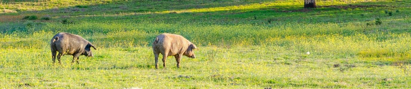 - Jamón Ibérico de cebo de campo: Schinken von iberischen Schweinen, die in Freilandhaltung auf der Weide gehalten und zusätzlich zu den Weidekräutern, die sie fressen auch mit Getreidefutter gefüttert werden.